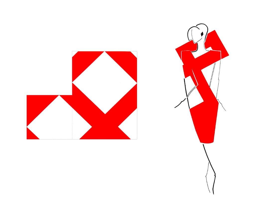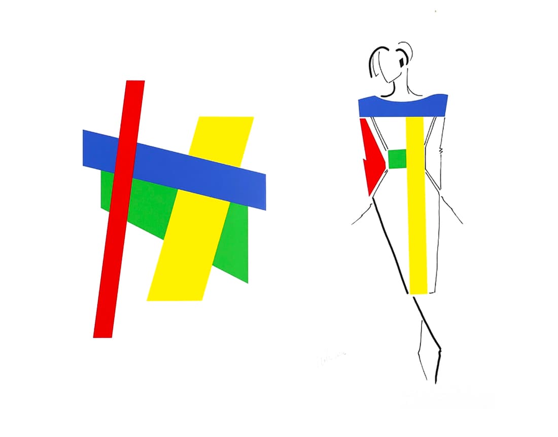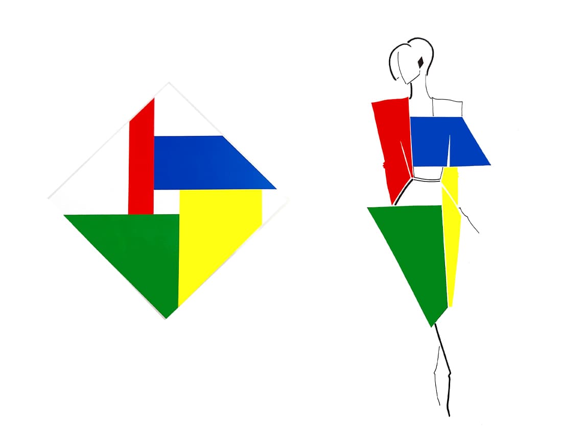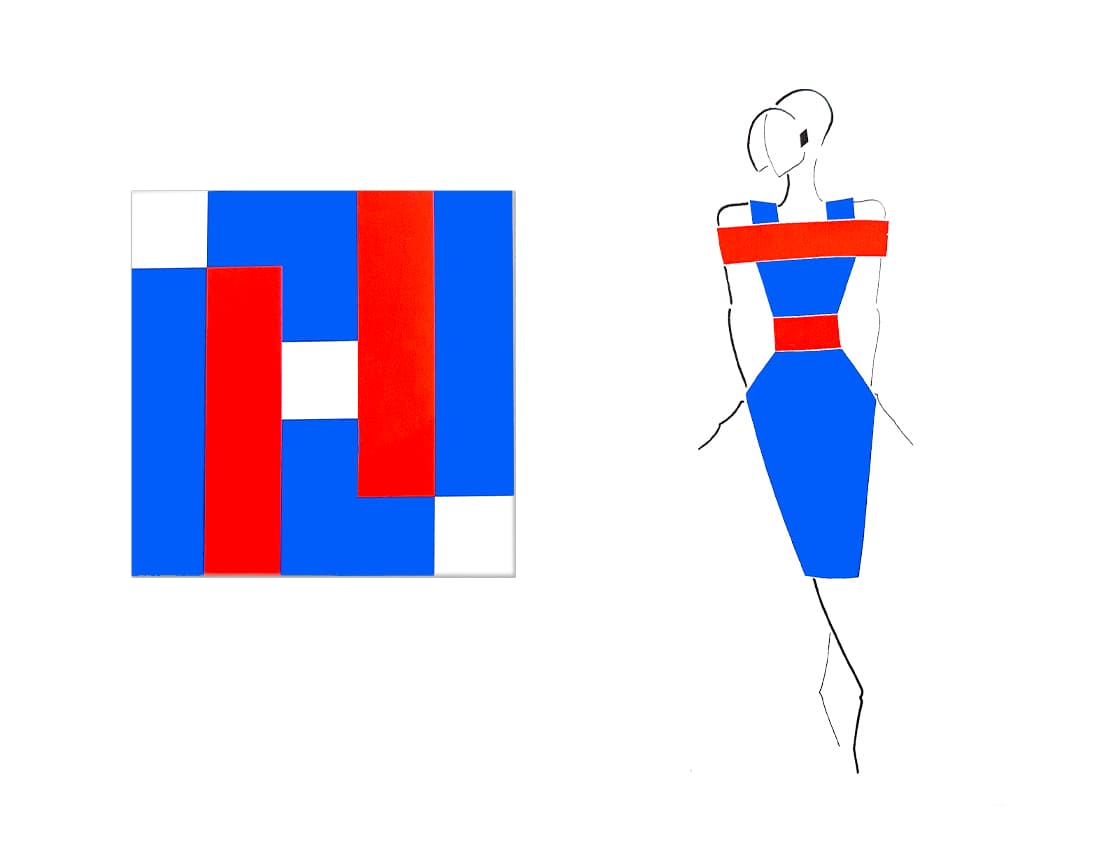 De streng constructivistische schilderijen van Bonies inspireren Molenaar tot een twintigtal ensembles die elk een heldere vlakverdeling kennen. Elke creatie is een driedimensionale uitwerking in stof van een specifieke Bonies-compositie.