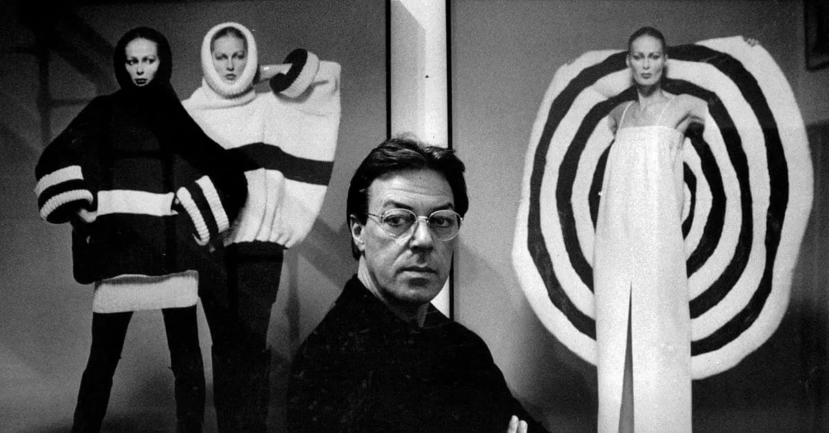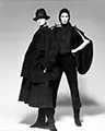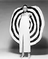 The autumn collection of 1977 represents an artistic highlight in Molenaar's geometric-abstract views. He chooses to apply only basic geometric shapes. Form, material, and color contrast are balanced. A bold, sleek, and clear concept: couture pieces made up of circles and rectangles, squares, and triangles. The shapes, which appear strict at first glance, create surprising volume and elegant movement around the body.