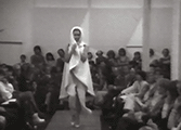The white version of the circle cape comes into the possession of Jopie Teekens, one of Molenaar's earliest couture clients. She and her husband Eijmert Teekens, successful entrepreneurs in the butcher trade, are among Molenaar's financial benefactors from the very beginning.